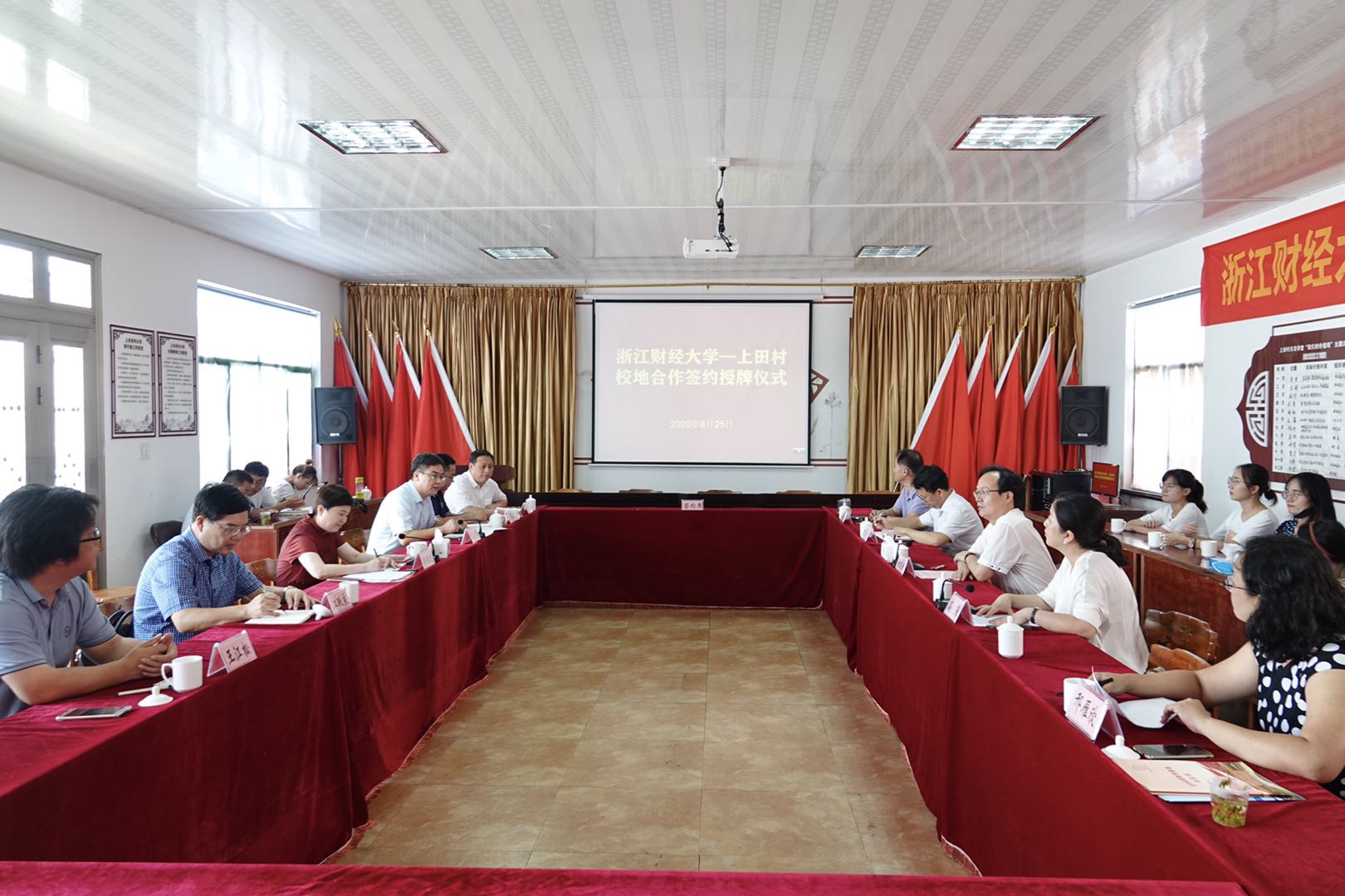 8月25日,浙江财经大学与临安上田村“书法产业研究基地”和“三地一窗口思政实践育人基地”签约授牌仪式在天目学堂举行。校党委副书记黄建新、人文与传播学院党委书记高燕、成人影院 院长书记贺武华、上田村党总支书记潘曙龙共同为基地签约挂牌。临安区宣传部长李赛文、临安区板桥镇党委书记袁...
