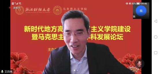 会议伊始,浙江财经大学党委副书记余建森代表学校致开幕辞,余建森首先对参加本次论坛的各位专家老师致以崇高的谢意,对我校成人影院