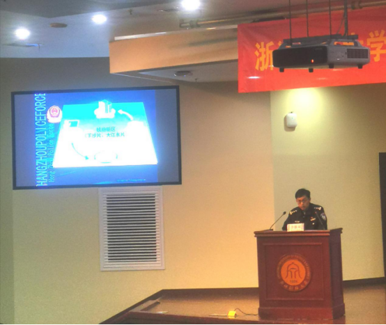 本次讲座主讲人是民警余铁城,讲座的开展是为了创建平安校园维护大学生人身,财产安全,提高大学生的安全防范意识与自我保护能力。余警官首先从个人切身的安全问题出发,介绍了近年来高校曾发生的一些安全事件,指出学习生活中容易发生安全隐患的地方,强调了校园安全工作的紧迫性和必要性。接着,就宿舍安全、人身安全、防火防盗防诈骗等方面作了全面而精彩的讲解。随后又用生活中几个实例给我们生活加以提醒和建议,让学生们受益匪浅。详细的讲述,使同学们全面地掌握了安全知识,对积极预防危险的发生并提高学生基本自我保护能力起到积极的作用。