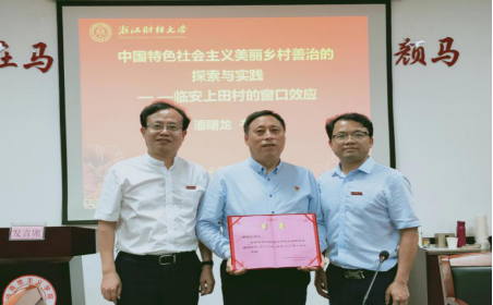 在3号楼211会议室隆重举行了“三地一窗口”论坛第一讲的报告活动。浙江省优秀共产党员、杭州市人大代表、临安区板桥镇上田村党总支书记潘曙龙作了题为《中国特色社会主义美丽乡村善治的探索与实践--临安上田村的窗口效应》的精彩报告。校党委副书记黄建新报告前与潘曙龙书记进行了亲切会谈,院长、党委书记贺武华主持会议。学院部分老师,研究生秘书,研究生辅导员和全体研究生参加会议。