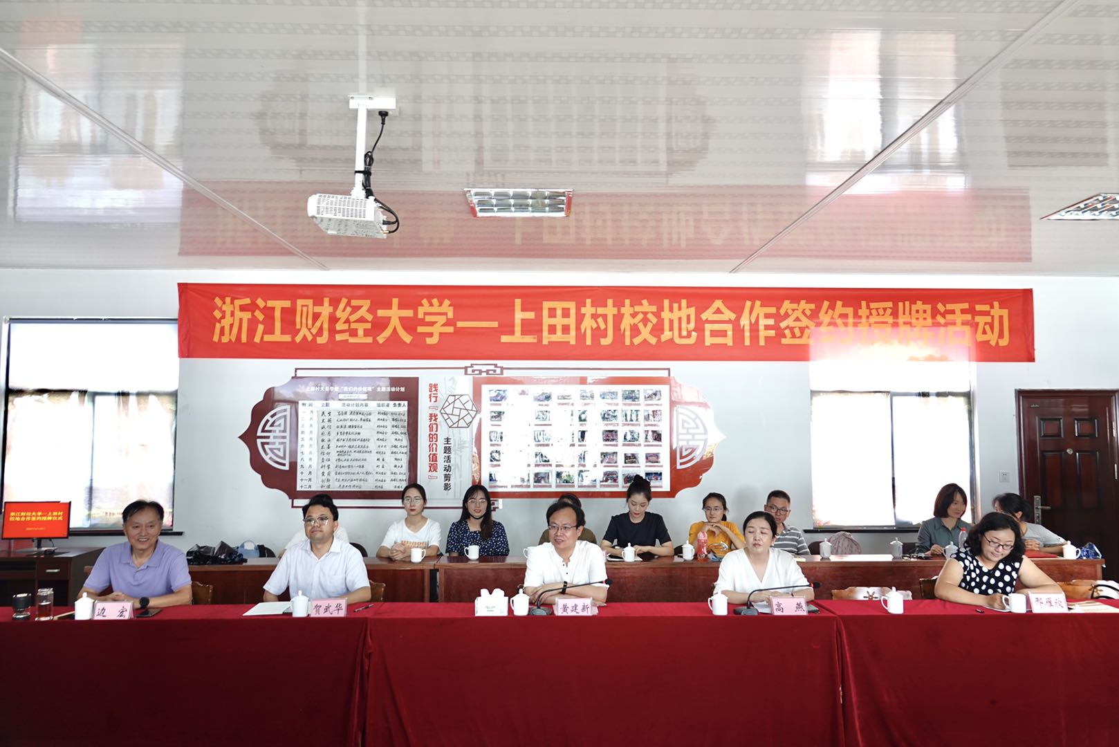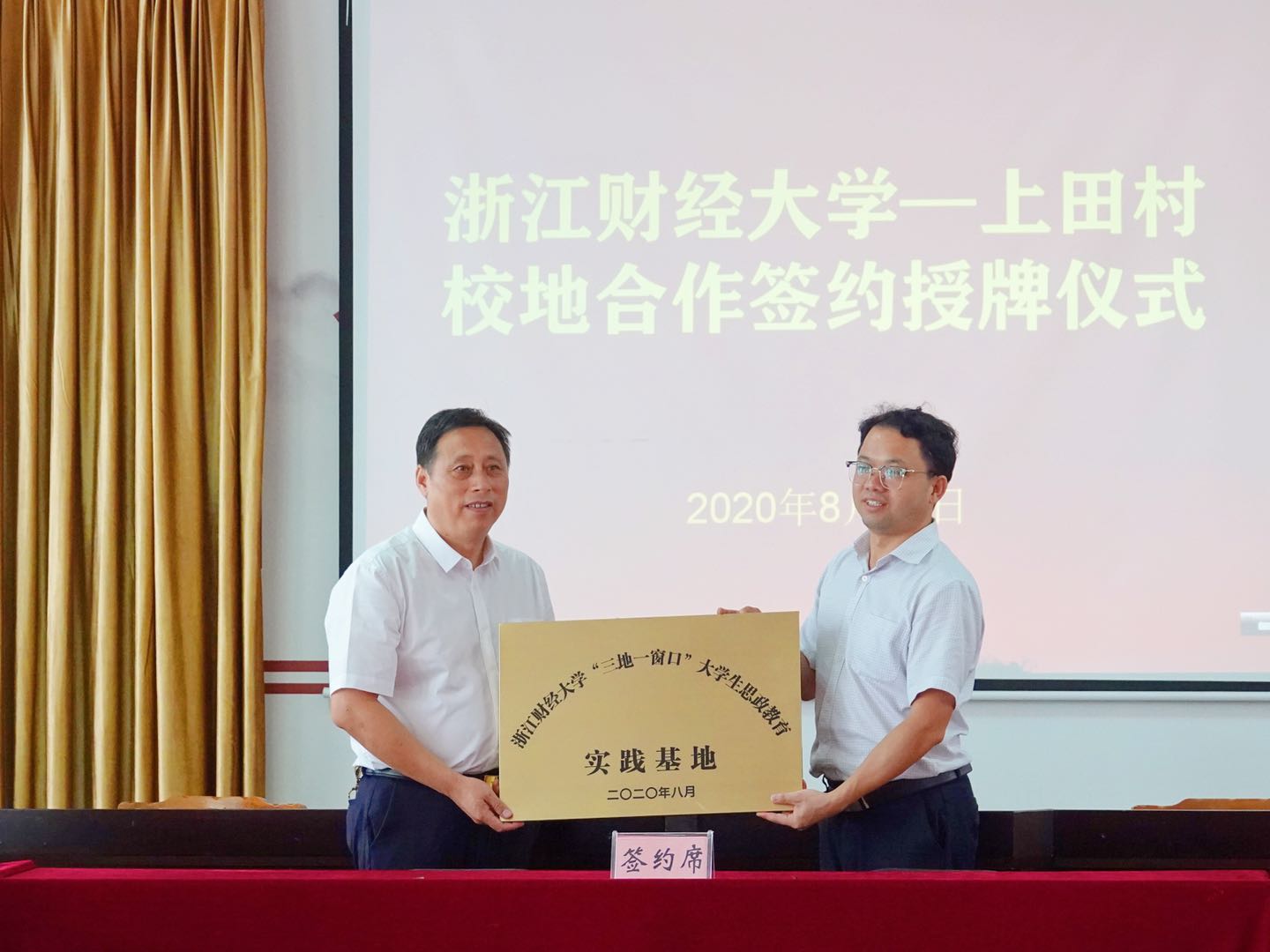 院长、党委书记贺武华和上田村党总支书记潘曙龙共同为“浙江财经大学‘三地一窗口’思政实践育人基地”签约授牌。