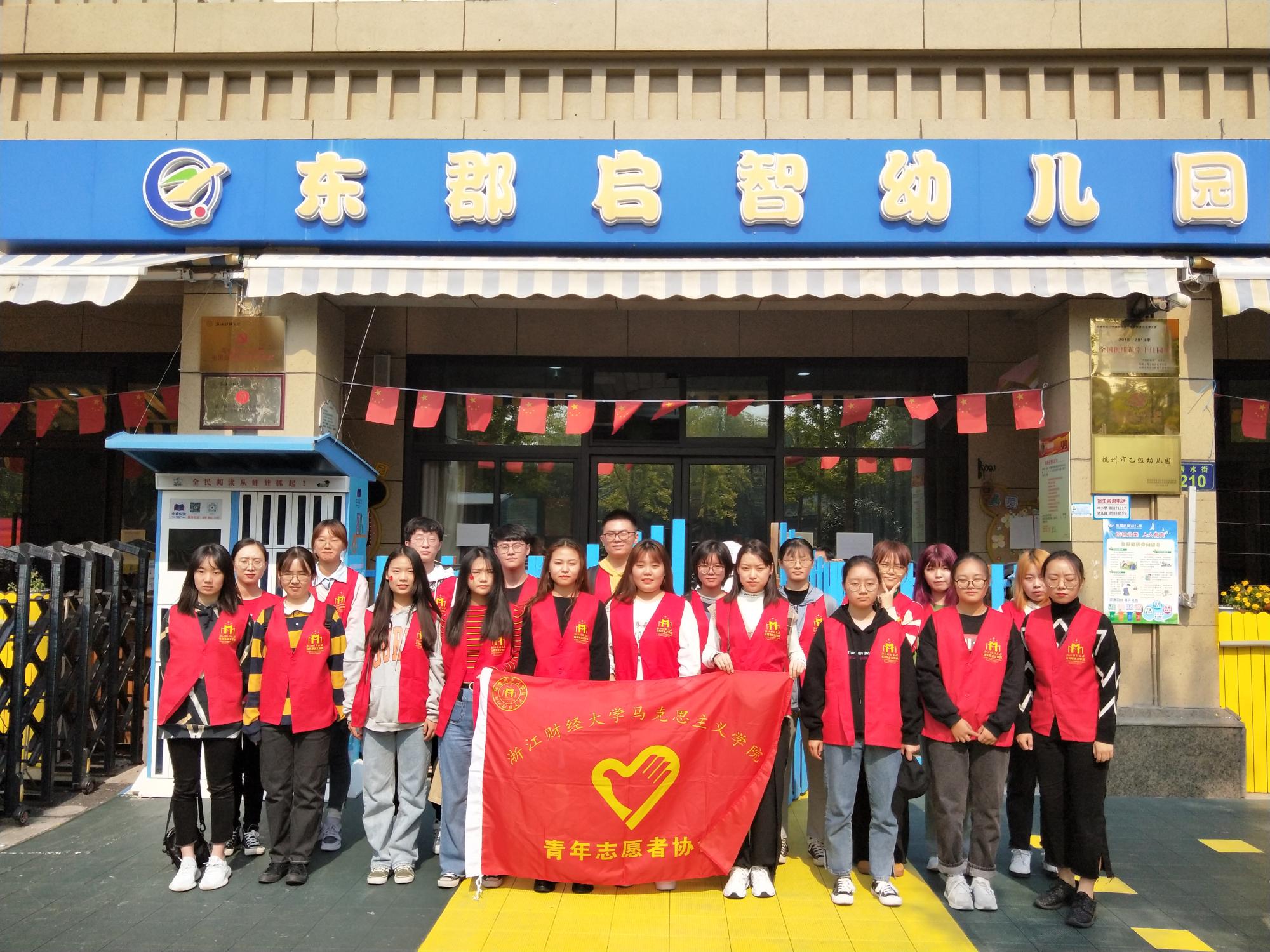 青年志愿者协会发起并组织了针对杭州启智幼儿园“我爱我的祖国”歌谣比赛的志愿者服务活动。艺术学院、法学院和人文与传播学院、金融学院的本科生志愿者们也积极参与了本次志愿者活动。大家热情洋溢、认真细心、团结互助,共同完成了本次志愿者服务活动。