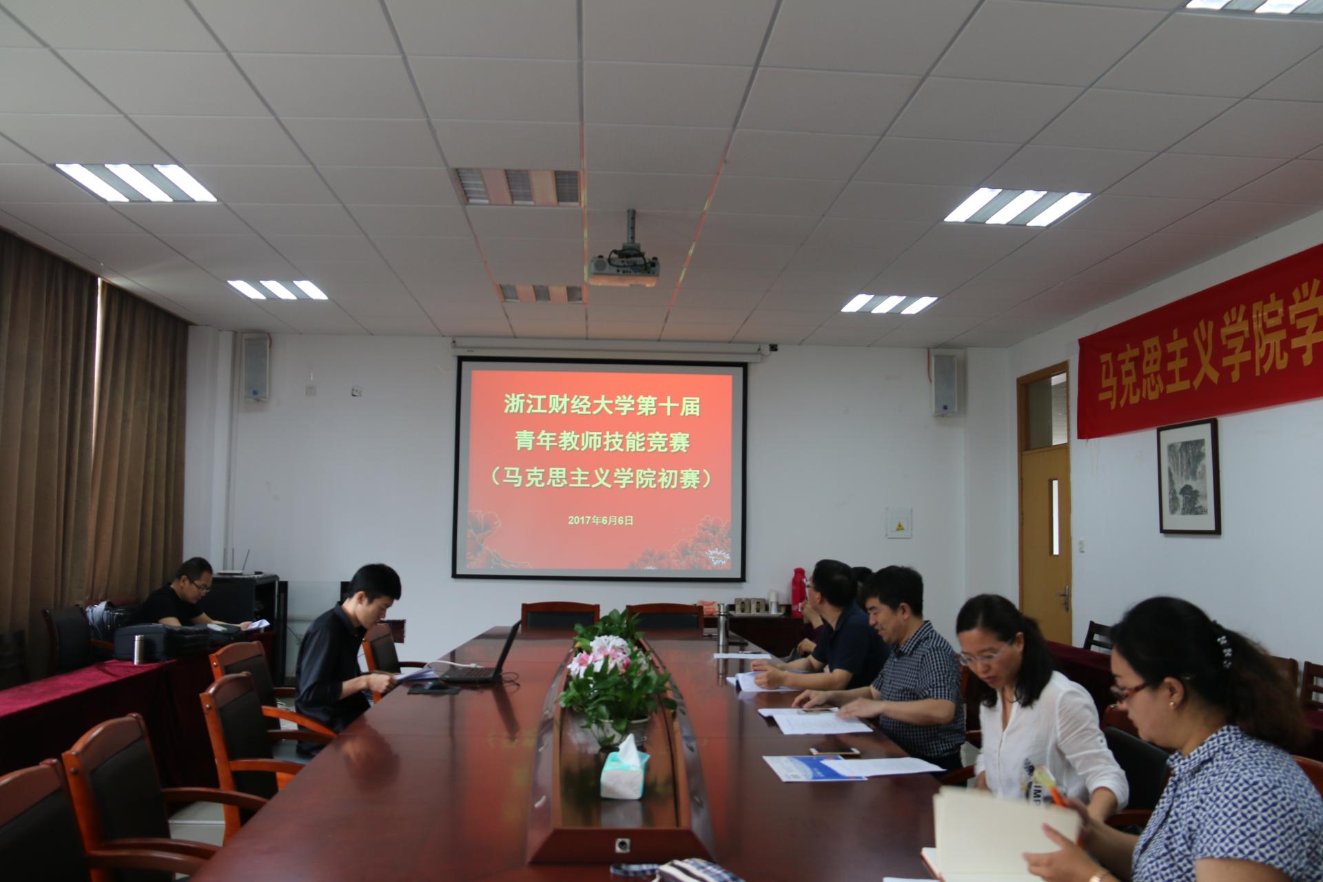 举行了浙江财经大学第十届青年教师教学技能竞赛初赛,比赛由院长助理高伟主持,经过各教研室前期层层选拔,优中择优,推荐周浩、韩金起等老师参加学院比赛,学院书记华正学、工会主席邢雁欣老师、本科督导组组长白羽教授以及各教研室主任担任此次比赛评委。