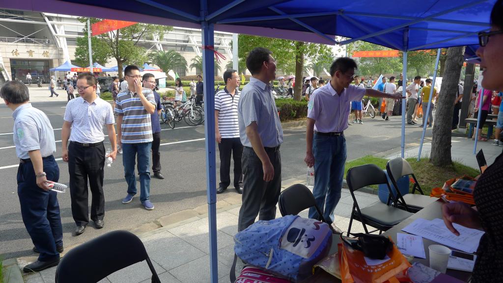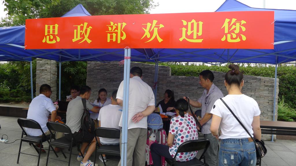 7:30左右,14级志愿者就在辅导员黄丽萍老师的带领下做好了迎新准备工作,开始接待到校新生。工作中,校领导也来到研究生迎新现场,看望参加迎新工作的老师和志愿者,并对其辛勤工作表示感谢。随后,思政部主任华正学老师详细询问了新生报到情况,并与前来报到的新生及其家长亲切交谈,询问学生本科就读院校、入学专业等等。