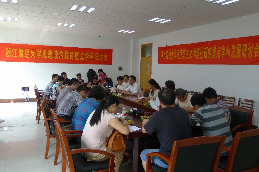 9月14日上午,浙江财经大学马克思主义中国化研究和思想政治教育两个校级重点学科在思政部会议室联合召开学科发展研讨会。刚刚为我校师生做完“十八大以来理论界热点问题解析”学术报告的清华大学成人影院