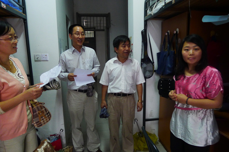 思政部领导一行首先看望了刚刚来校报到的新生。他们同新生及家长亲切交谈,详细询问新生的基本信息,住宿、生活是否适应新的环境,了解了其他新生的报到情况,回答了一些新生及其家长关心的问题。他们告诉学生,有什么问题和困难及时与研究生辅导员联系,并鼓励新生认真学习,争取在新的环境再创辉煌。屋外秋雨潇潇,屋内春意隆隆,学生和家长对领导的走访和关心再三表示感谢!