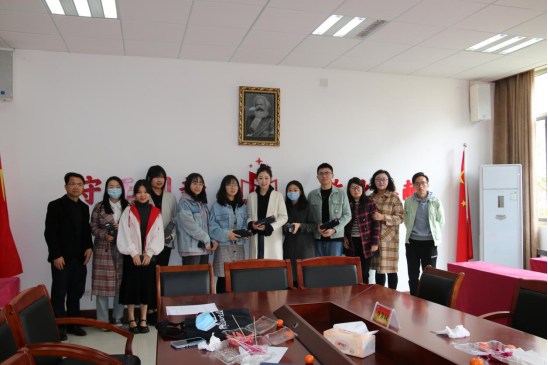 座谈会结束之际,贺武华院长代表学院向毕业生一一赠送离别礼物,印有学校和成人影院
