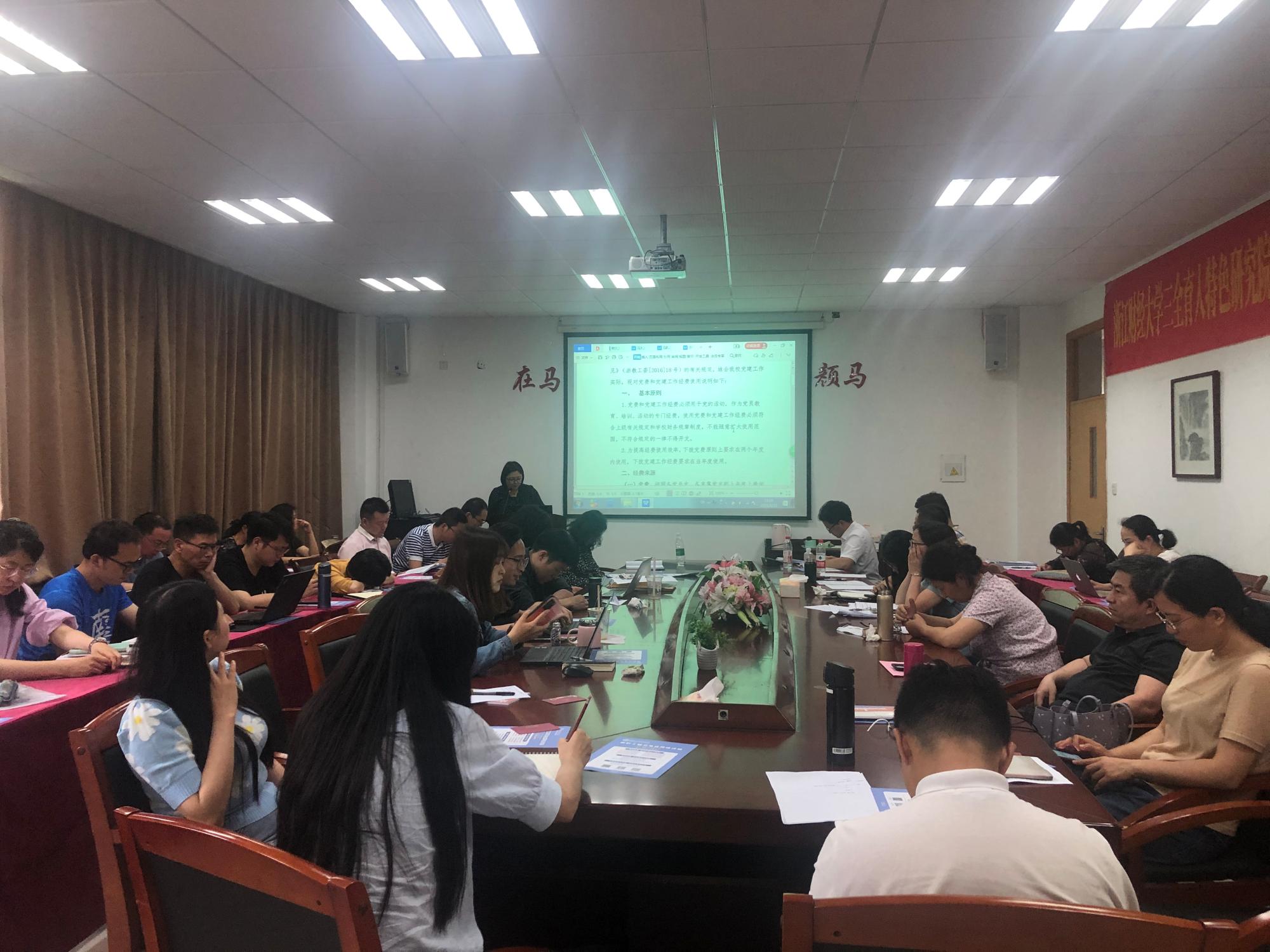 副院长邢雁欣、办公室主任祝丽萍、科研秘书黄丽萍、教学秘书王瑜、组织员宋维维带领教职工研读了《思想政治理论课建设专项经费使用办法》《成人影院