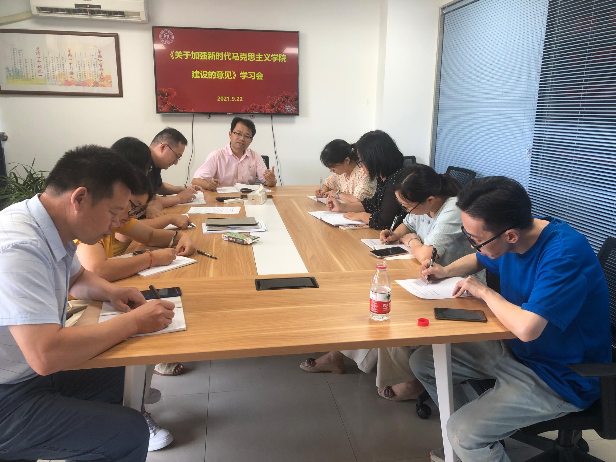 召开专题学习研讨会,研究贯彻落实《意见》。会议由学院党委书记、院长贺武华主持,学院全体行政人员、支部书记代表、教研室主任代表以及教师代表参加会议。学院各教研室通过多种形式组织学习了《意见》精神。
