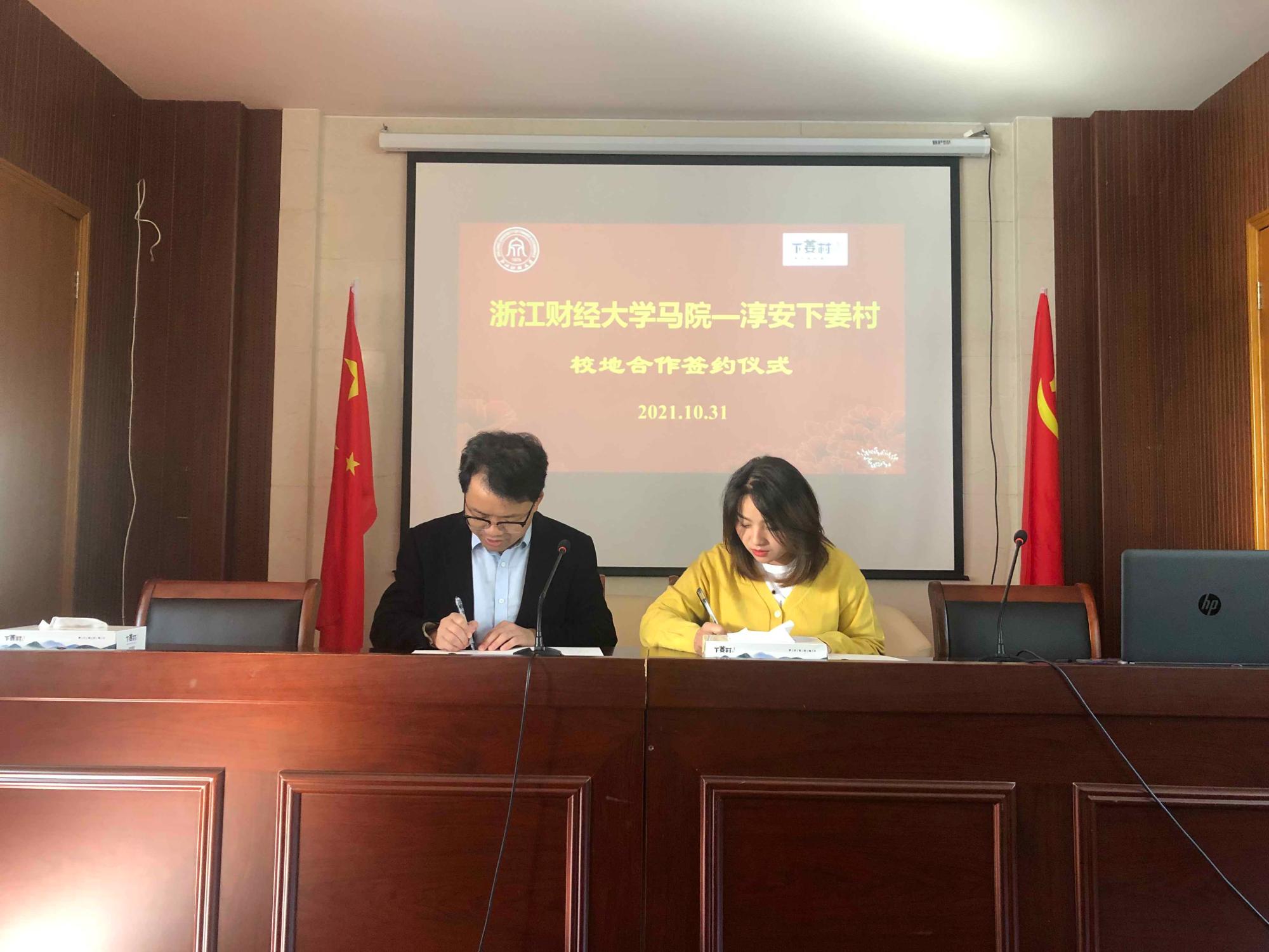 党委书记、院长贺武华与下姜村党总支书记姜丽娟举行了校地合作签约以及“浙江财经大学‘三地一窗口’实践教学与研究基地”授牌仪式。随后,双方举行座谈交流会,成人影院