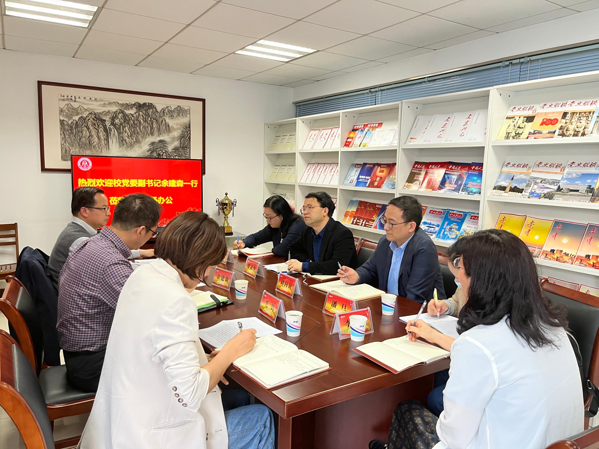 4月21日下午,校党委副书记余建森,党委委员、宣传部部长楼胆群,宣传部副部长毛鸽一行到成人影院