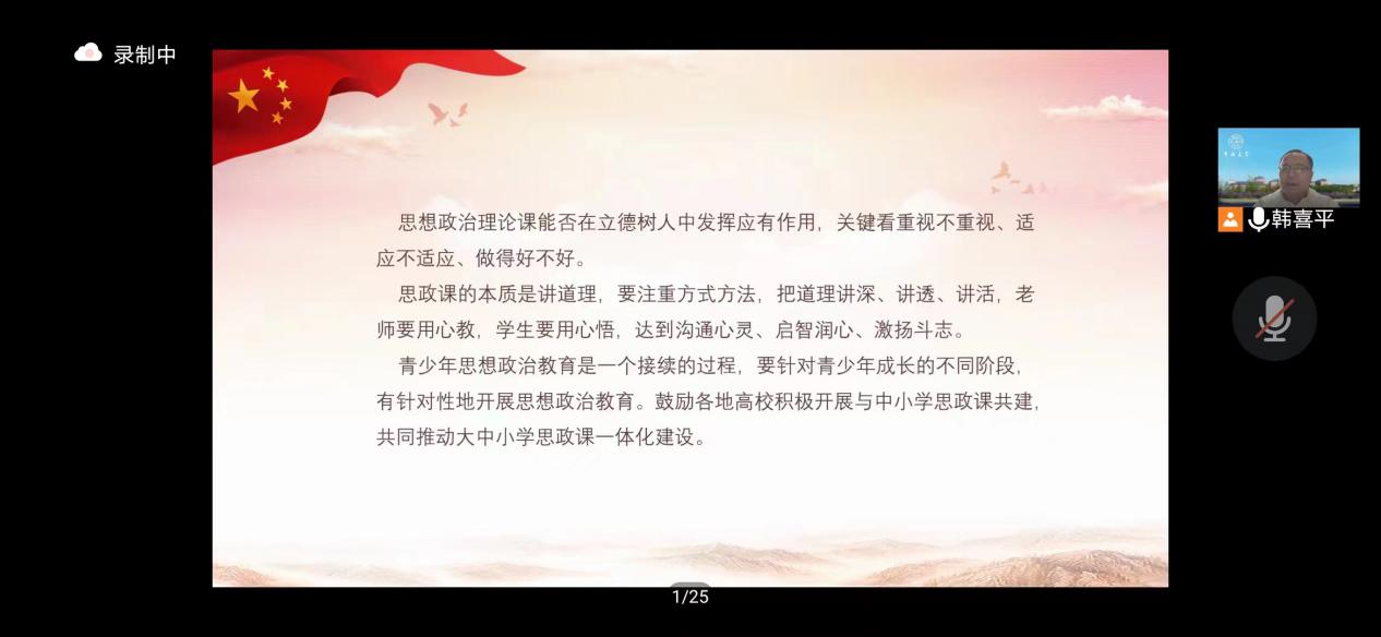 7月9日下午,国内著名的马克思主义理论研究专家、吉林大学党委副书记、博士生导师韩喜平教授作《把握习近平新时代中国特色社会主义思想的重点难点》的线上主题报告。韩教授的分析、指导为进一步深化《概论》课教育教学提供了卓有意义的引导和启发,与会老师倍感受益良多。会长渠长根教授作《<概论>课教学案例选择的原则与规范》的主题报告,围绕理论联系实际的案例选用要领、密切联系群众的案例选用规则、批评与自我批评的案例选用尺度,做了深入的理论解析与学术探讨。