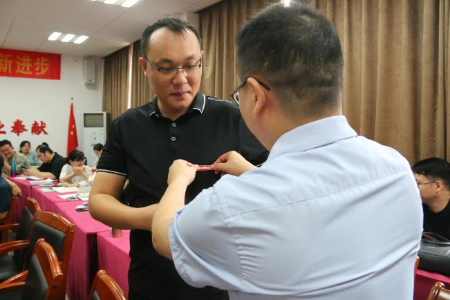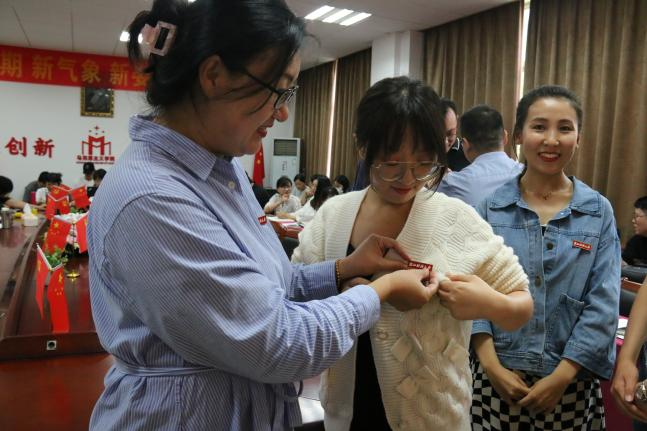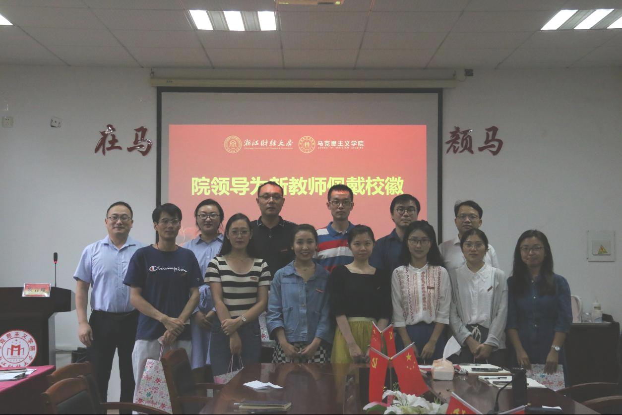 随后,学院党委副书记刘向前、副院长邢雁欣分别为新入职教师佩戴校徽、赠送入院礼并合影留念。在场教师以热烈掌声欢迎新教师加盟。