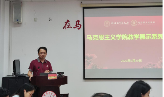 教授陈慧女以“思政课教学的‘道’与‘术’”为题进行了教学展示。她从如何看待思政课、思政课对教师的要求、怎么整合资源进行备课三个方面逐层深入,探索了如何上好思政课。她强调增强课堂教学实效性关键在教师,提出青年教师要掌握好马克思主义中国化的理论成果,从话语、学术、人格、信仰四个层面提高自我修养,守正创新,因材施教,提高教学的思想性和理论性。同时要适应目前的教学环境,针对教学对象的特点,转变观念,大胆创新,提高教学的亲和力和针对性。