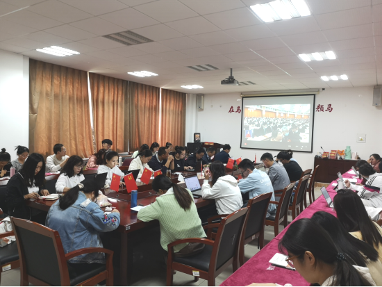 组织师生党员、入党积极分子在学院楼211会议室集体观看了开幕会直播。与会人员聚精会神地聆听习近平总书记作报告,不时用笔记下报告中的精彩语句。大家一致认为,报告旗帜鲜明、思想深邃、气势恢宏、催人奋进。