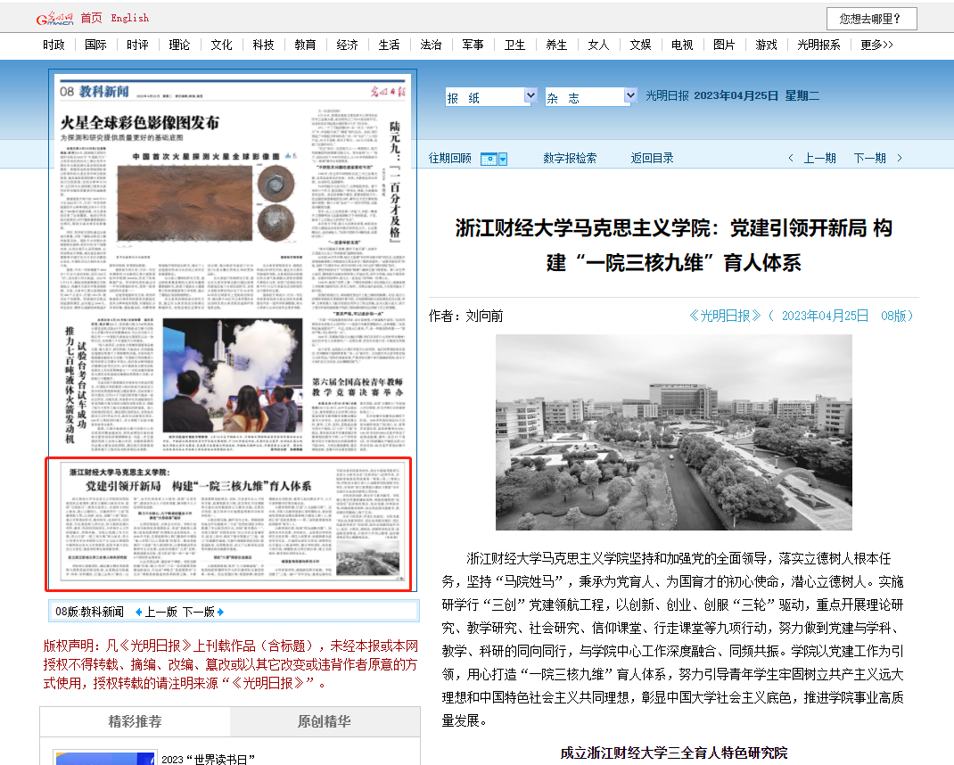 从德育到育德,打造“人力战略引擎”。近年来,学院3名教师获浙江省师德标兵,获全国高校思想政治理论课影响力提名人物1人,获浙江省“思政星课堂——第二届我最喜爱的思政课教师”称号1人。