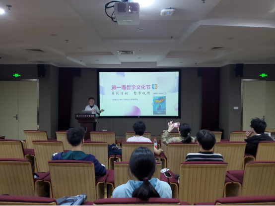 马克思主义基本原理教研室主办的第一届哲学文化节系列活动在图书馆多功能活动厅继续进行,第二场活动的主题是“哲学观影”,由王聪老师主持观看《蝙蝠侠·黑暗骑士》,吸引了各学院师生二十余人前来观看。