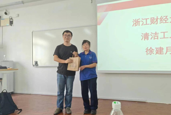 2023年11月6日-8日,冯侃老师在《习近平新时代中国特色社会主义思想概论》课堂上,邀请我校清洁工人徐建月走进课堂,同大一学生们讲述劳动的故事。