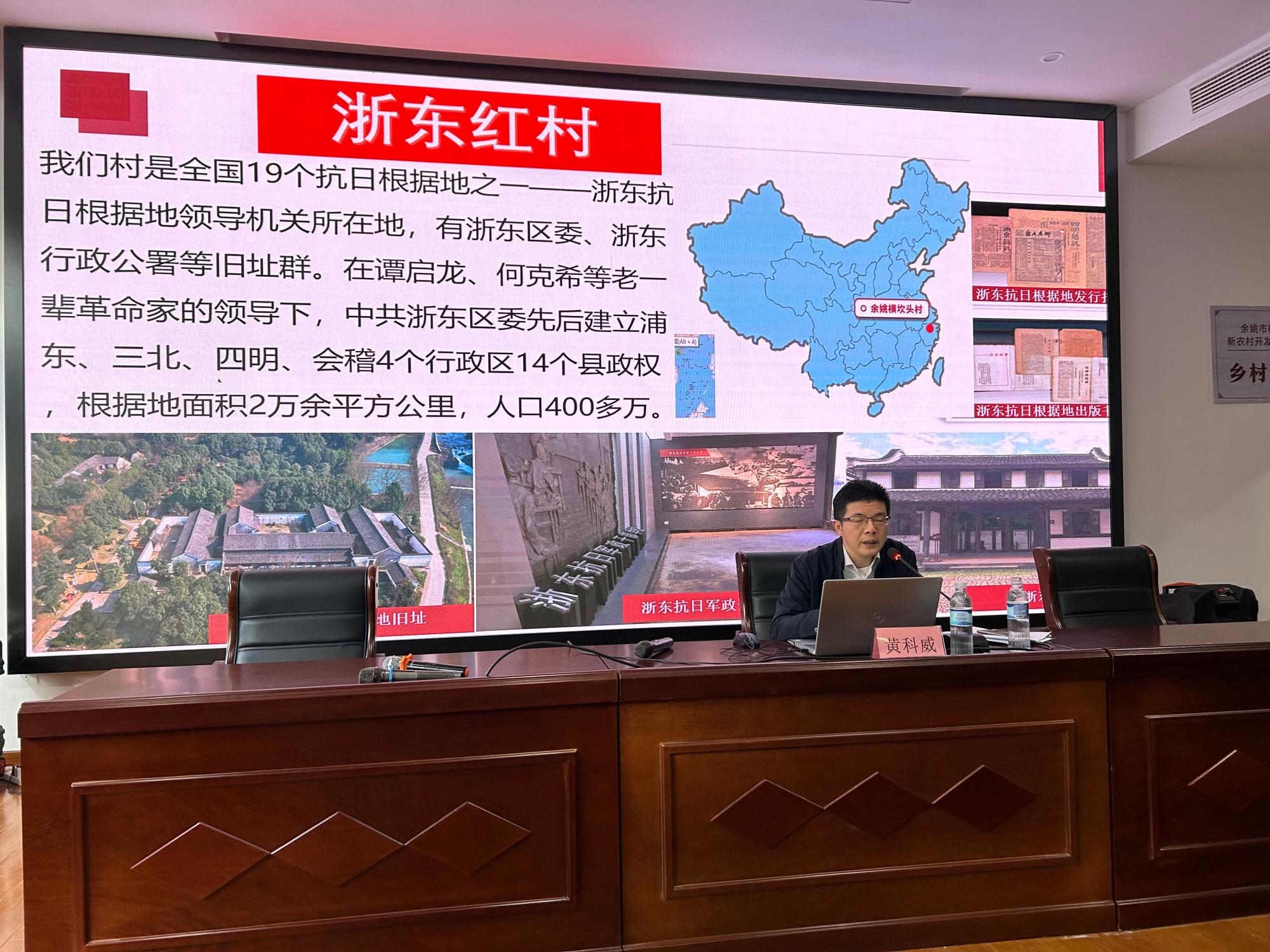 11月25日上午,横坎头村支书黄科威书记以“红色赋能乡村振兴”为主题为我校人文学院的学生讲了一堂生动的浙江乡村共同富裕课。黄书记讲述2003年习近平总书记曾到横坎头村视察工作时场景,以及习近平总书记给横坎头村的两封回信,希望他们“发扬老区的优良传统,保持艰苦奋斗、自力更生的精神面貌,解放思想,与时俱进,加快老区开发建设,尽快脱贫致富奔小康”。黄书记介绍了20年来,横坎头村在村党委班子的带领下,发扬老区人民艰苦奋斗、苦干实干精神,大力发展“红绿”融合的特色农旅产业,充分挖掘横坎头村历史优势、区位优势,打造浙东红村的历史过程,介绍了乡村产业发展和集体经济取得的成果。横坎头村为革命老区摆脱贫困实现共同富裕探索了一条新路径。