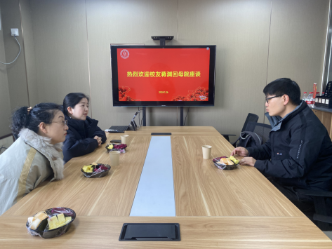 会议室与西藏人才引进校友蒋渊进行座谈,并向校友发出学校五十周年校庆的邀请。