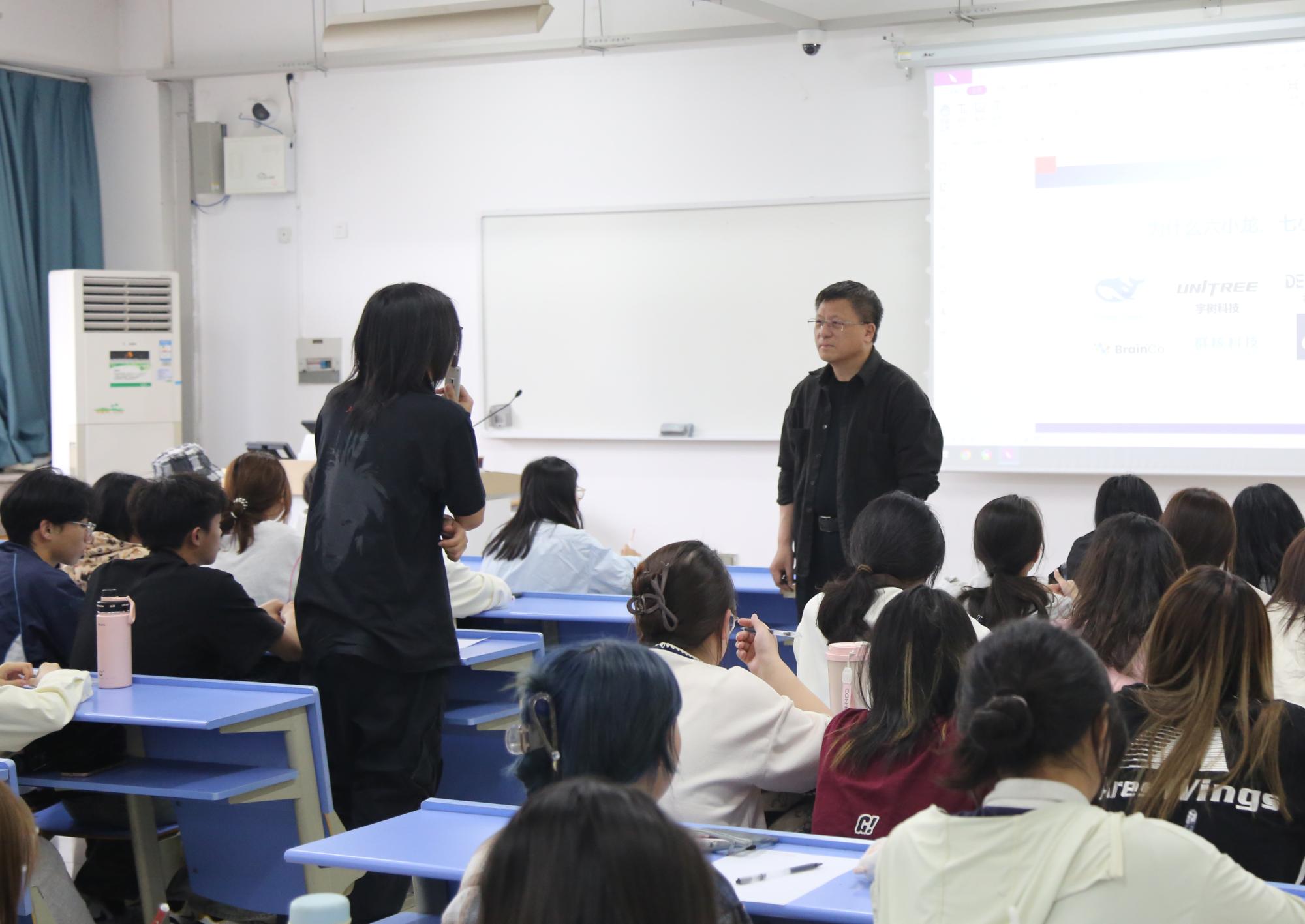 在课堂上,魏江校长以“上大学的目的是什么?”,切入数智时代人的核心能力培养问题。这一灵魂之问投射于青年发展维度,得到学生的热烈回应。魏江引导学生,“人的发展是一个追寻选择权的过程”,在数字化浪潮中,个体发展的实质是对自主选择权的持续追寻与价值重构。课程立足我校MAQ人才培养体系,通过“价值引领-能力锻造-素质提升”三维育人模型解析,在观点碰撞中深入探讨了新时代青年人才的成长路径与使命担当,为培养堪当民族复兴重任的强国一代提供了思想坐标和实践指南。