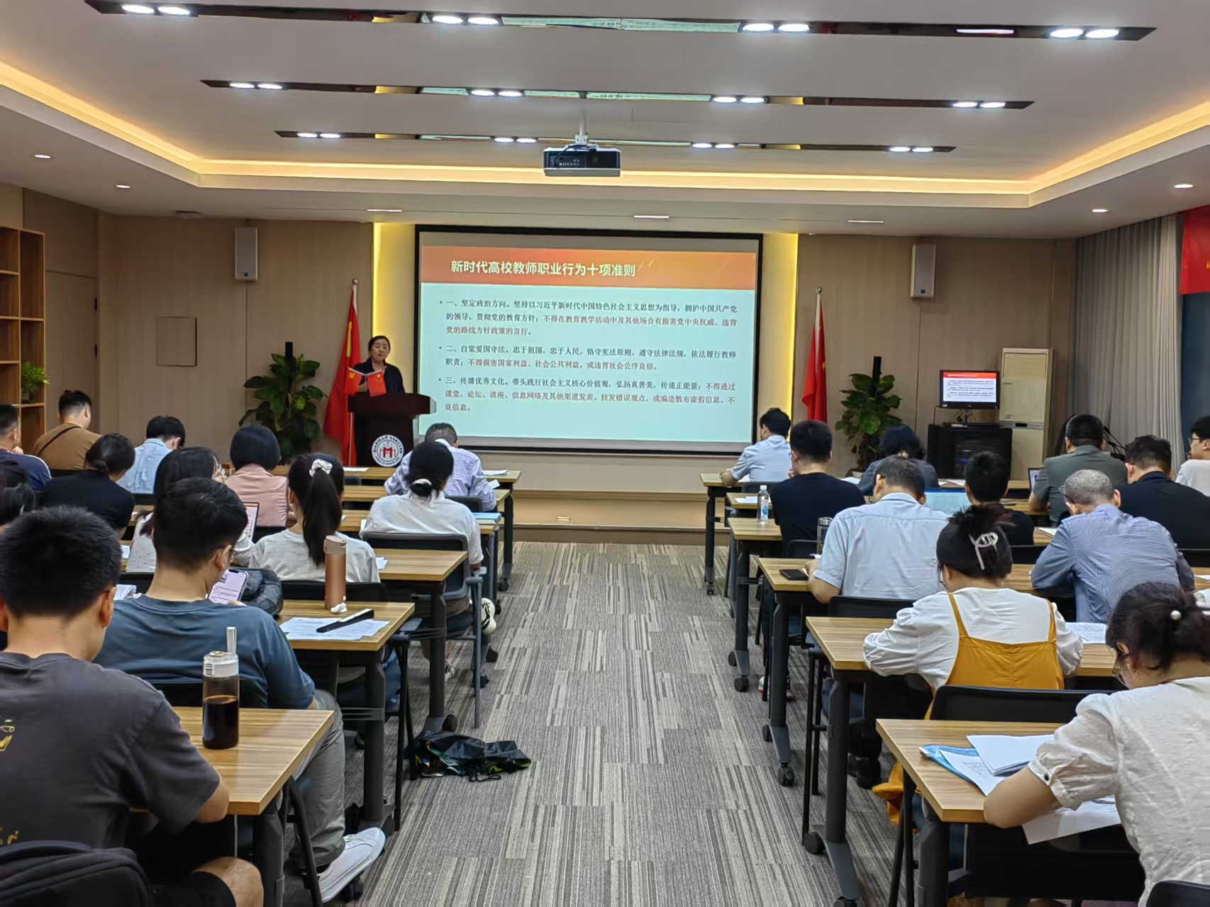 会上,高燕传达了学校《师德师风突出问题系统整治工作方案》和《浙江财经大学思想政治理论课队伍建设方案》精神,通报了违反师德师风的典型案例,并带领全体教师重温《新时代教师职业行为十项准则》及《关于规范党员干部网络行为的意见》。她强调,全体教师要明确职业规范,恪守言行雅正,持续提升职业道德素养。