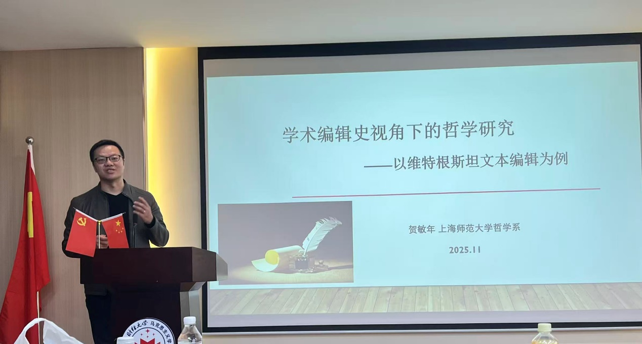 上海师范大学贺敏年老师以维特根斯坦作品的出版历程为核心案例,深入剖析了学术文献编辑与哲学研究之间的深层关联。他在分享中不仅细致阐释了维特根斯坦独特的哲学写作范式,更以其学生对维氏文献的整理实践为切入点,系统归纳出三种既相互独立又互为补充的文本理解路径,为在场师生提供了文献研究的全新视角。