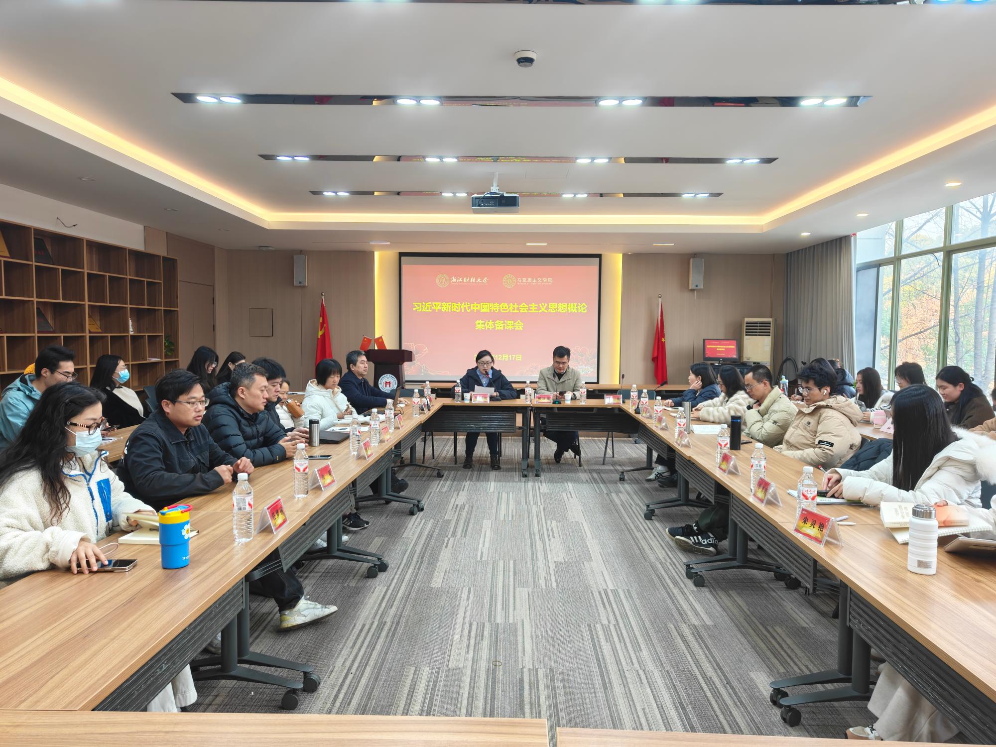 特邀浙江省委党校法学教研部主任褚国建教授开展“习近平法治思想”专题集体备课会。本次备课会由副院长邢雁欣主持,“习近平新时代中国特色社会主义思想概论”“思想道德与法治”“形势与政策”课程组教师及相关专业研究生共同参与,现场研讨氛围浓厚,成果丰硕。