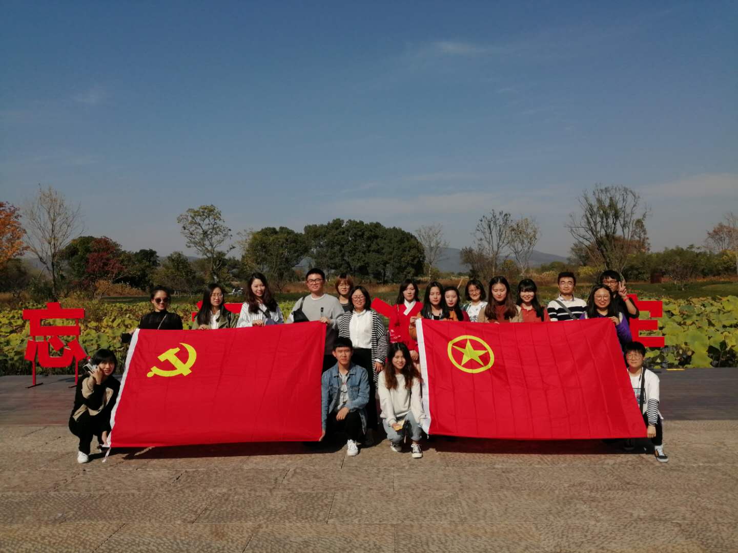 参观中,同学们连连赞叹良渚古城的震撼,实地感受这片承载着五千年伟大文明史遗迹的圣地,文化自信与民族自豪感在每个人心中油然而生。在参观活动的尾声,大家在遗址公园的“不忘初心,牢记使命”标语前合影留念,激励着成人影院