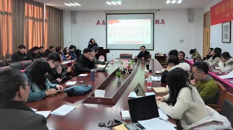 具有丰富的CSSCI和SSCI发表论文经验的胡洪彬副教授、于江霞副教授、王亚丽博士分享了自己撰写和发表论文的经验,全体无课教职工参与了此次经验分享会。