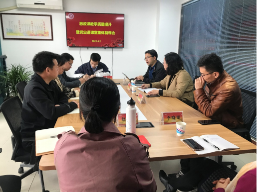 在提升思政教学质量方面已做的工作和未来计划。邢雁欣副院长汇报了“校领导党史系列课”的教学内容和工作进展情况。参会教师就如何“讲深、讲透、讲活、讲好”思政课的创新方法与举措、如何发挥学生和教师双向主体性作用等问题展开热烈讨论,并就党建统领教学、“双带头人”制度的完善、精品课程建设、“集体备课”“学评教”制度等问题作发言交流。