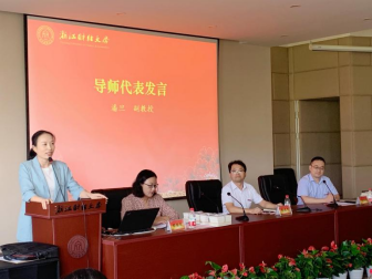 潘旦副教授代表硕士生导师发言。她先代全体硕士生导师对研究生新生表示了欢迎,其次,她从思考目标、思考行动和思考情绪三点出发,启示同学们要做有目标、有行动和懂得调节情绪的新时代青年。
