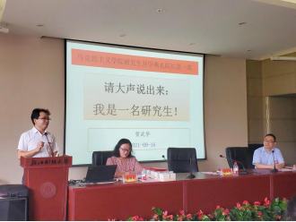 的同时,也期望同学们能够珍惜学习的机会,正视自己的新身份。院长对新同学们提出了三点要求:端正学习的态度、学会学习的方法和提高学习的自主性。他用石头、沙子和水,生动形象地揭示了在研究生阶段应该如何合理分配时间以及由衷地希望各位新同学能够在研究生阶段早日明确目标。最后,贺武华院长引用了《学习的革命》中的“任何人都可以更快地学习几乎一切东西”来鼓励新生主动去探索、去学习,也祝福大家能在财大成人影院