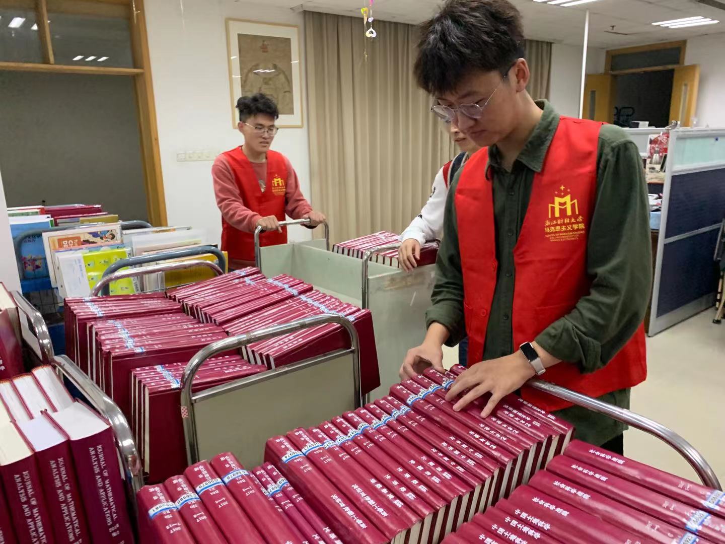 11月5日下午,⻢克思主义学院组织志愿者去图书馆进行志愿者服务。此次志愿者活动由2020级 及2021级学生共同参与。