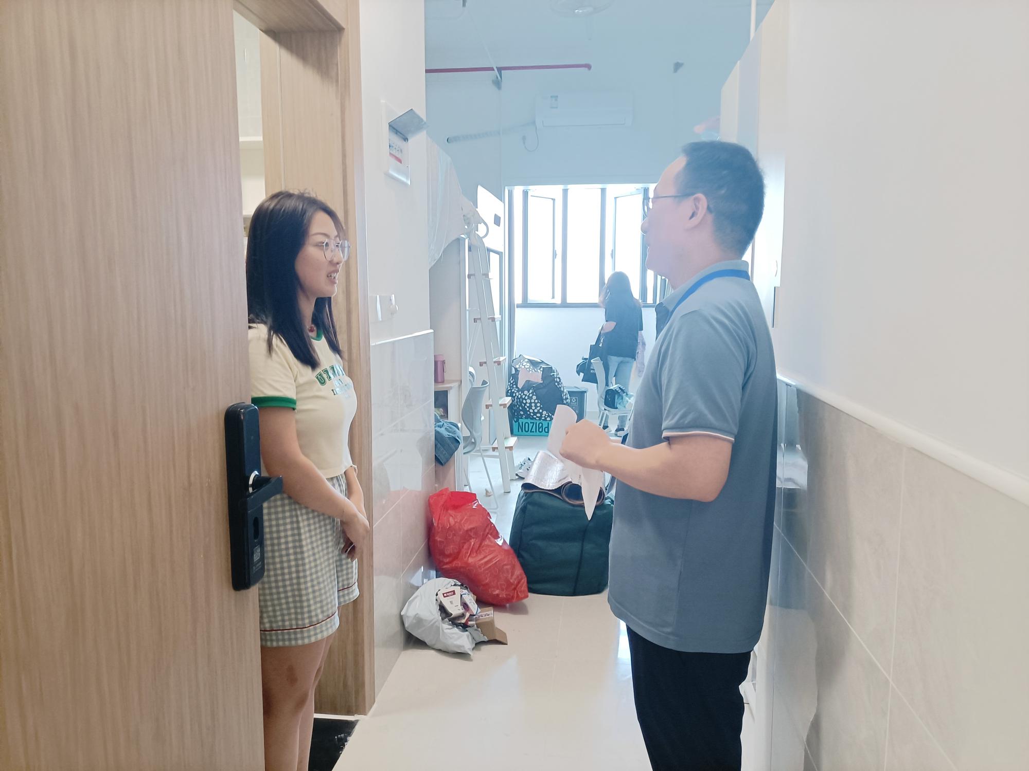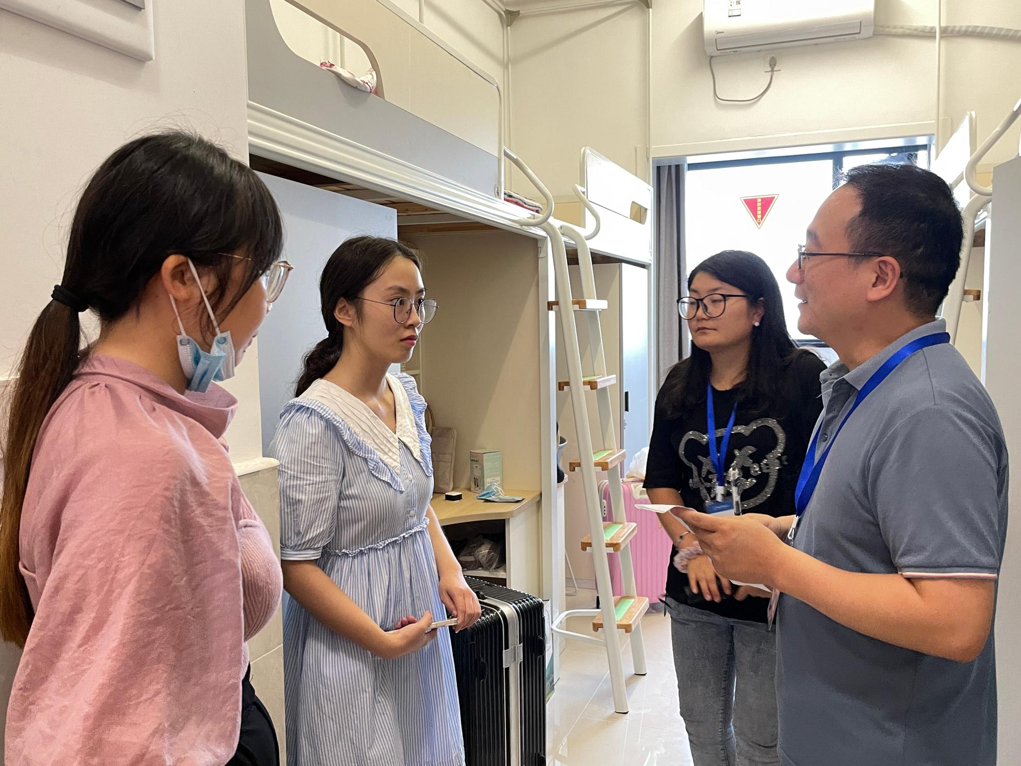 下午3点半,学院党委副书记刘向前、辅导员王瑜老师走访了新生寝室,了解学生报道和住宿情况。期间,老师与新生们亲切交流,解决遇到的困惑和问题,并鼓励新生在研究生阶段努力学习,在财大成人影院